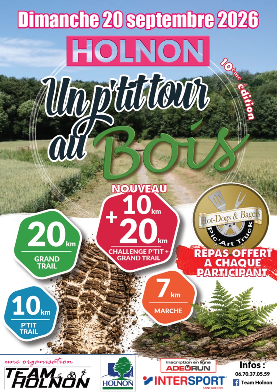 Dimanche 20 septembre : « Un p’tit tour au bois » Trails et marche organisés par Team Holnon (rendez-vous au stade Gilles Raimond)